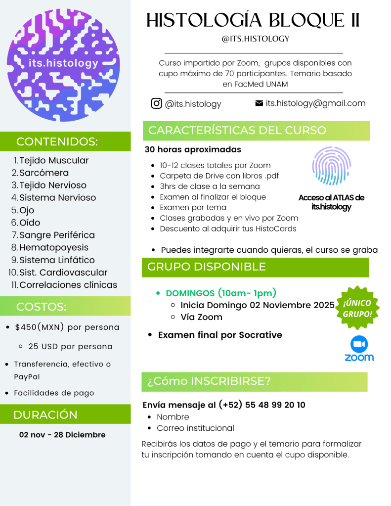 Si no cuentas con acceso y ya realizaste tu pago, comunícate en la página de Facebook its_histology