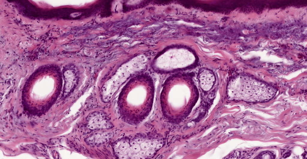 Asociadas a folículos pilosos.