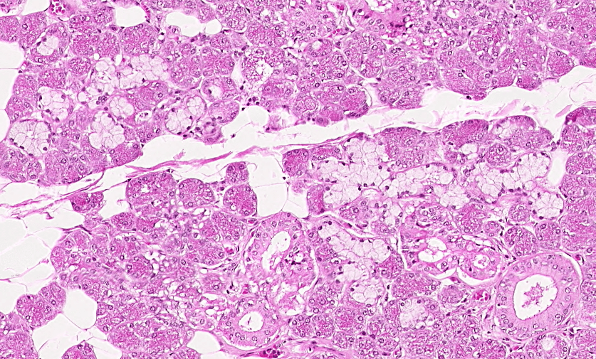 Glándula salival mayor SEROSA y con adipocitos uniloculares.