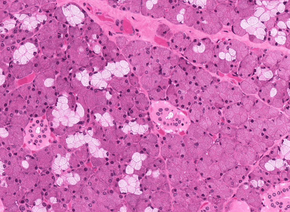 Glándula salival mayor mixta, de predominio SEROSO.