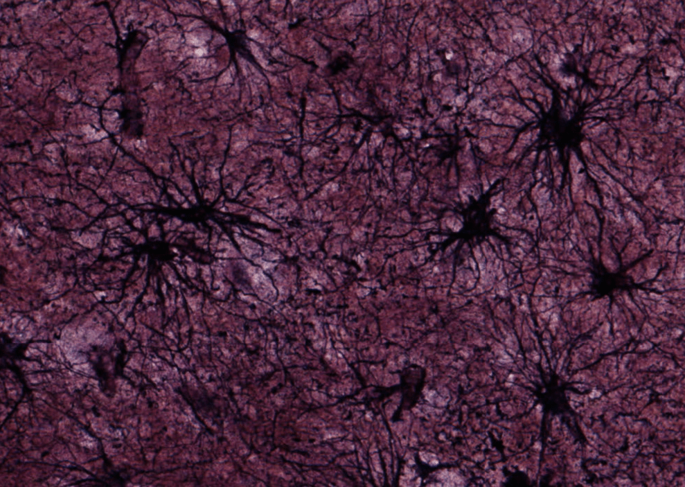 Los astrocitos pueden emitir prolongaciones hacia los vasos sanguíneos circundantes y formar los pies perivasculares.Los astrocitos fibrosos se encuentran en la sustancia blanca y exhiben prolongaciones largas.Los astrocitos protoplásmicos los ubicamos en la sustancia gris y exhiben prolongaciones cortas, parecen «pelusas».Los astrocitos intervienen en el metabolismo de neurotransmisores y se encargan de formar la barrera hematoencefálica.Astrocitos protoplásmicos. Procesamiento; QFB. Concepción Rugerio Vargas. Laboratorio de Técnicas Especiales, DBCT, FACMED UNAM.Procesamiento; QFB. Concepción Rugerio Vargas. Laboratorio de Técnicas Especiales, DBCT, FACMED UNAM.