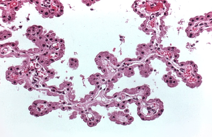 Observe el epitelio cúbico simple que reviste los plexos coroideos.Los plexos coroideos son un conjunto ependimocitos modificados asociados a vasos sanguíneos. Procesamiento; Laboratorio de Histología del DBCT, FACMED UNAM.Plexos coroideos teñidos con Luxol Fast Blue. Procesamiento; Laboratorio de Histología del DBCT, FACMED UNAM.Procesamiento; Laboratorio de Histología del DBCT, FACMED UNAM.Procesamiento; Laboratorio de Histología del DBCT, FACMED UNAM.